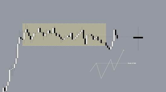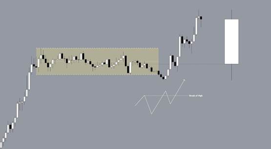 在这种情况下,出现了显着的上行趋势。价格也突破了之前的高点,具有上涨潜力。如果一切顺利,价格对我们有利,这就是我们预计要构建的日线层级的K线。