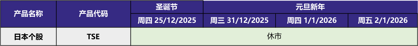 受此影响部分产品将因假期调整交易时间。具体时间变化如下: