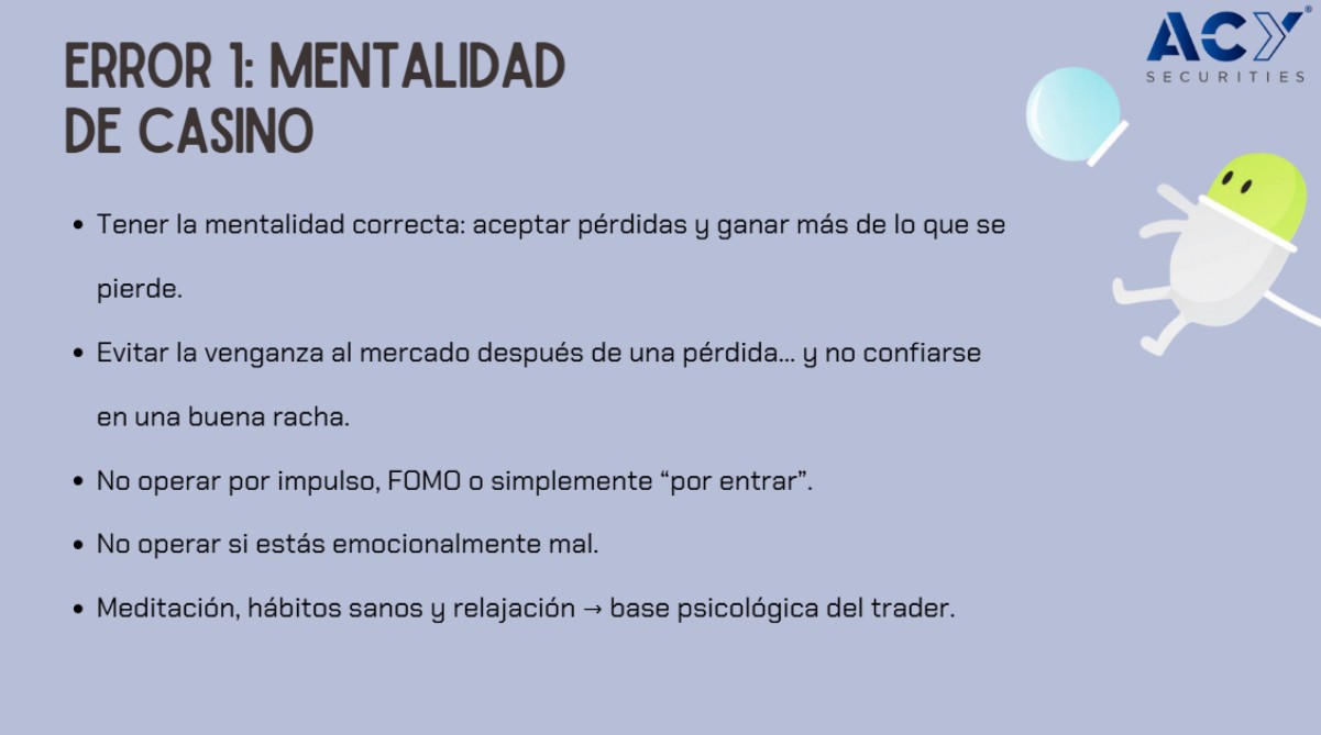 La mayoría de traders novatos pierde dinero no por falta de talento, sino por repetir estos mismos errores. Si quieres avanzar más rápido que el promedio, empieza corrigiendo tu mentalidad, tu riesgo y tu disciplina.
