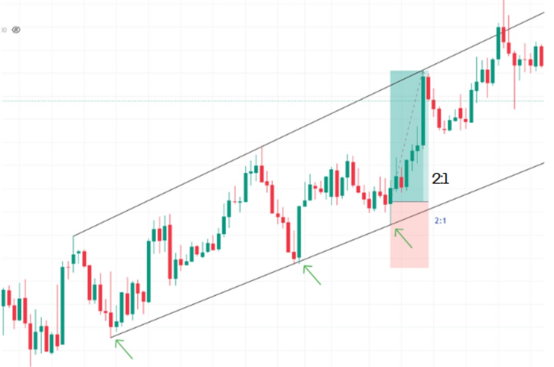 • Cuando el precio toque y rechace el canal, entrar en la operación