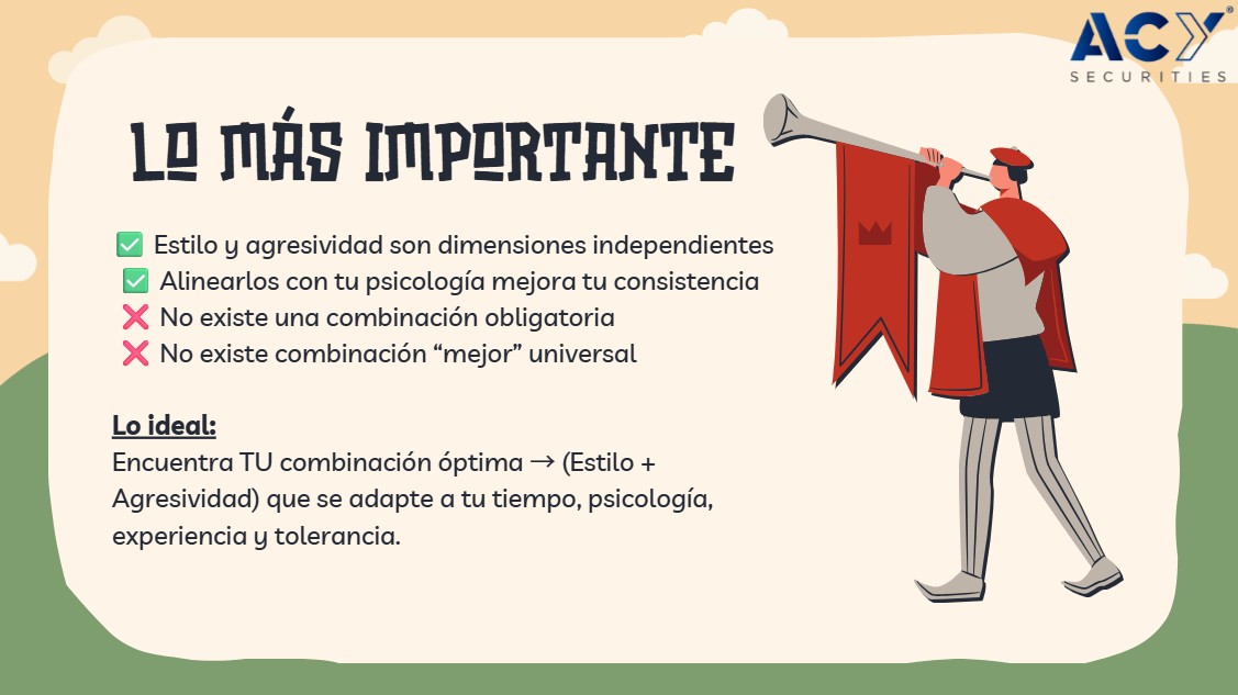 Encuentra TU combinación óptima → (Estilo + Agresividad) que se adapte a tu tiempo, psicología, experiencia y tolerancia.