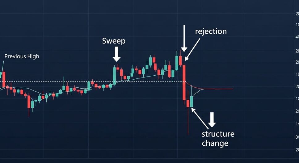 Barridos de liquidez (liquidity sweep): el precio rompe ligeramente el nivel para luego revertir con fuerza.