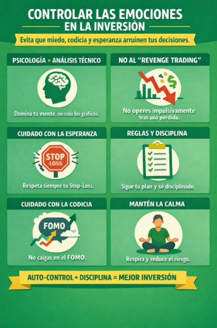 Uno de los errores más costosos en los mercados no tiene que ver con análisis técnico, fundamentales o indicadores avanzados. Tiene que ver con algo mucho más simple —y más difícil de dominar—: las emociones