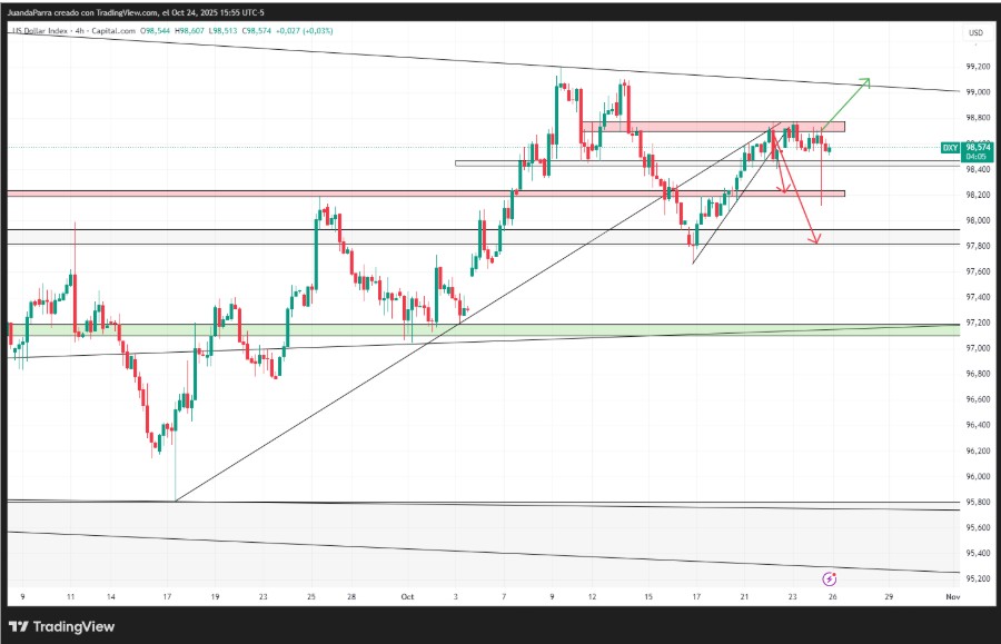 Si rompe a la baja, los niveles clave serían 98.200 y luego 97.880