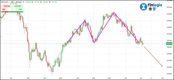 日本央行行长植田和男的态度目前仍偏向基本通胀率逐步攀升至央行2%目标,反映着经济正持续向温和复苏之路迈进,尽管特朗普引发国际政经动乱的能力无人能及,植田考量到这个情形,或许会延缓利率正常化脚步,然而大家可别忘了,日元作为传统的避险资产仍将吸引因政治动乱而来的资金,一来一往之下,日元仍可能趋涨。走势上来看,USDJPY形成双顶,若收盘跌破148.5,有机会往142迈进。