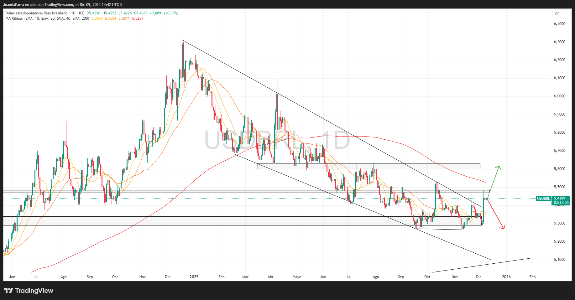📈  Escenario Alcista: Rompe el cuello de la figura y va a buscar los 5,615