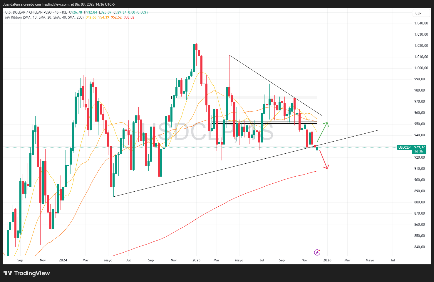 📉  Escenario Bajista: Rompe definitivamente y busca los 910