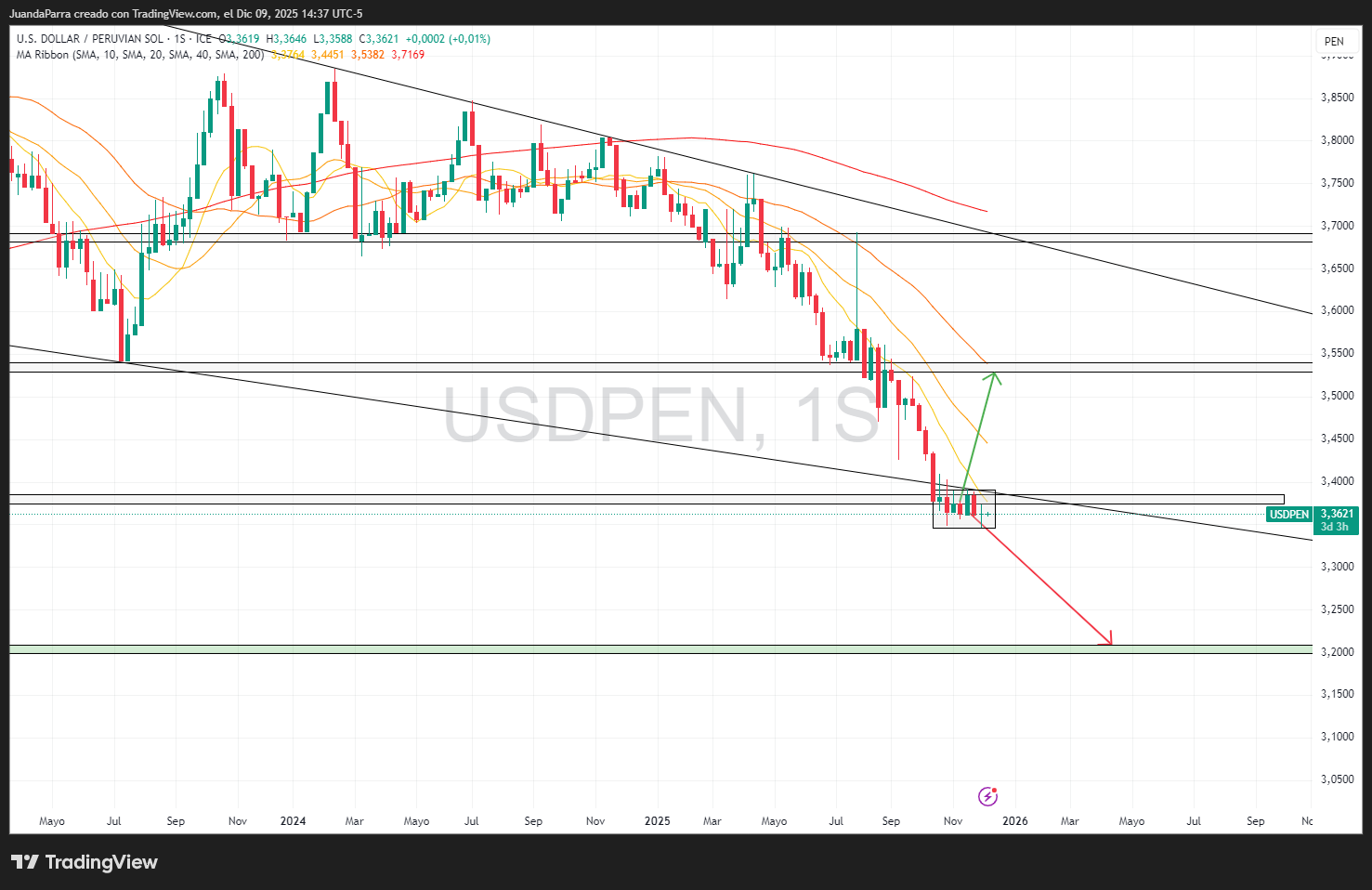 📉  Escenario Bajista: Vuelve a sus anteriores mínimos alrededor de los 3685