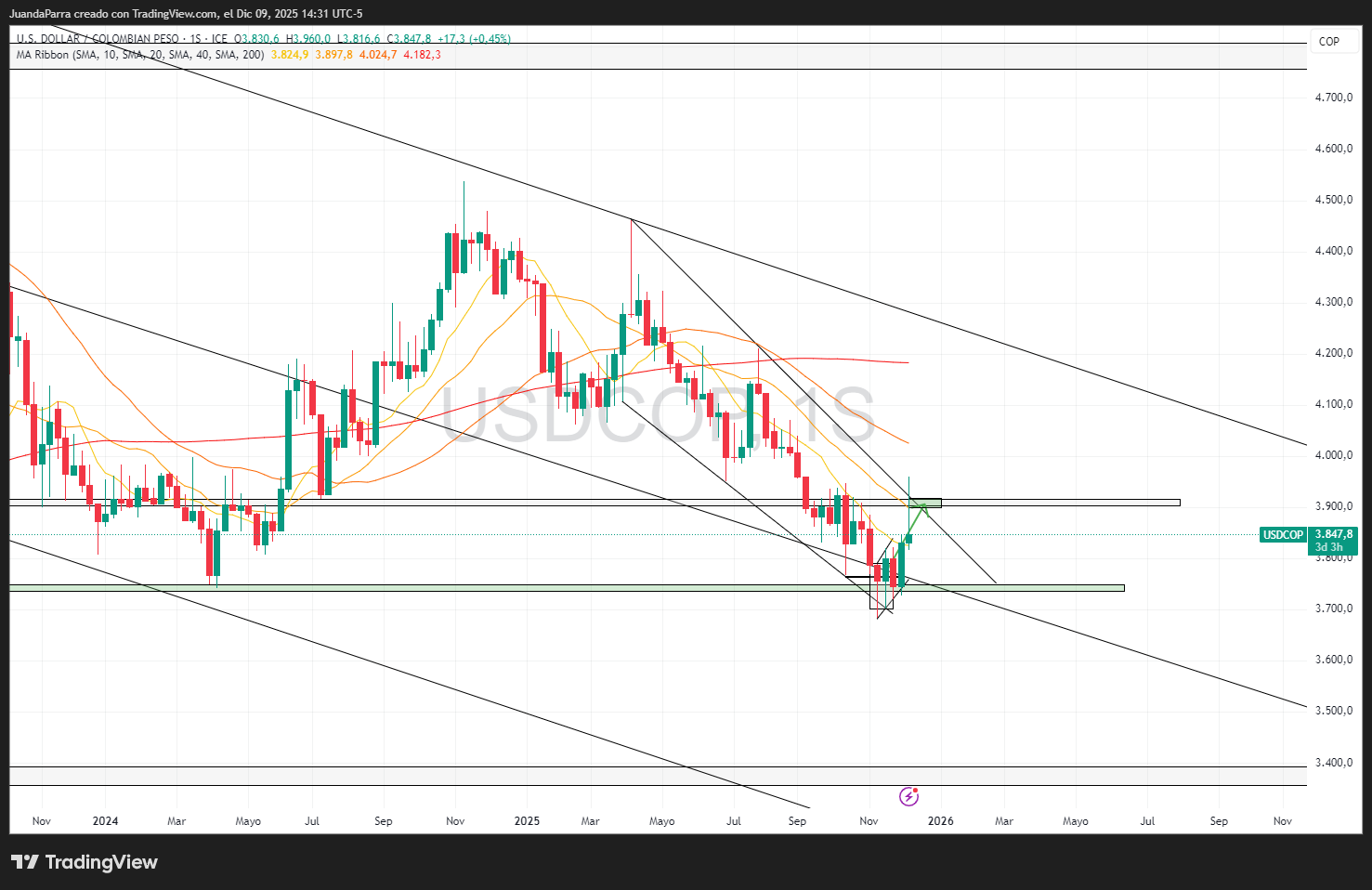 📉  Escenario Bajista: Vuelve a sus anteriores mínimos alrededor de los 3685