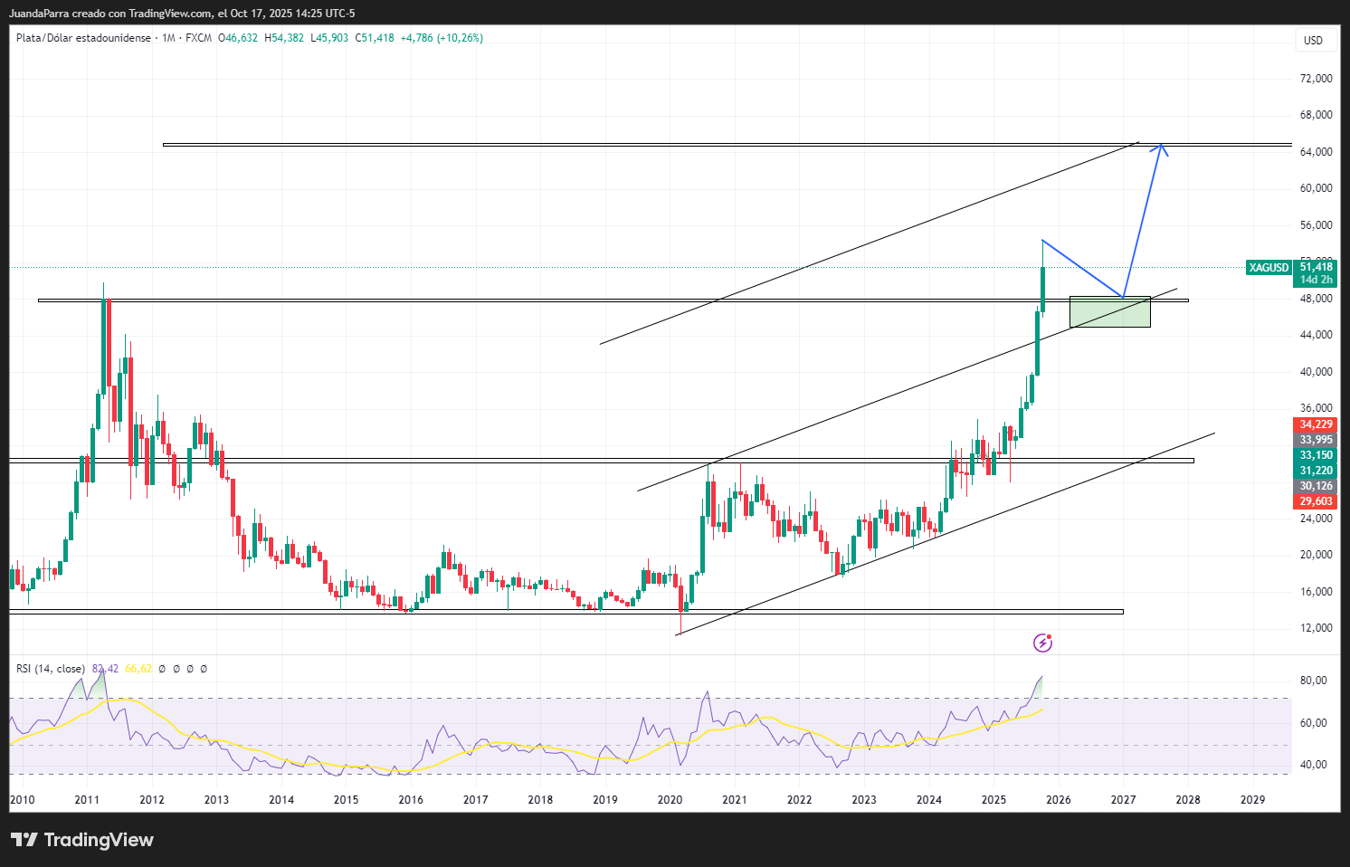 Es muy probable que realicé un retesteo de la zona, entre los 44 y los 48, ahí se pueden buscar oportunidades de compra, o que vuelva a entrar al canal, pero dado los fundamentales es más probable el escenario alcista, incluso sin retroceso.