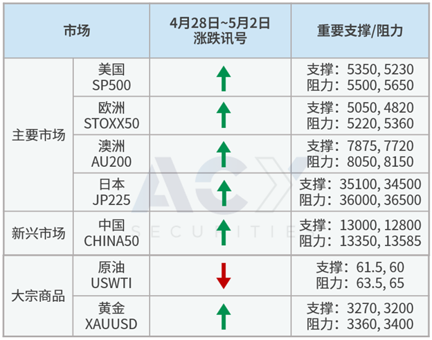 市场情绪严重受川普言论影响,他表示对中关税145%太高,最终会低于这个数字,并缓颊没有要解雇鲍威尔,这些言论让上周投资情绪大幅回暖,标普指数终于突破5500点,有机会进一步反弹到年线5650,全球股市下档空间有限,但中美对峙的不确定性仍高,短线以区间低买高卖来操作。欧洲和日本都已和美国进入谈判,但美欧谈判无实质进展,且欧盟对美国科技巨头处以反垄断罚款,更为谈判前景增添变数;日本则与美国谈判进入第二阶段,且双方表示不会对日元进行目标限制,可避免最坏情境。
