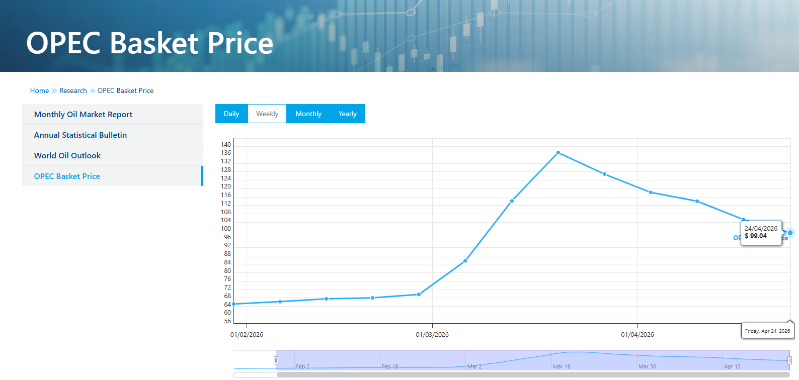 Weekly OPEC basket price 99.04