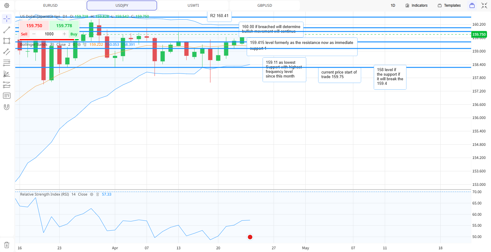 • Resistance 2 160.50 target for the current triangle breakout major psychological level.