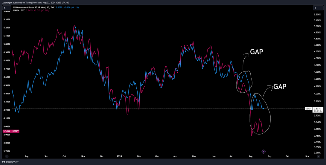 US10Y On Blue & US02Y On Pink