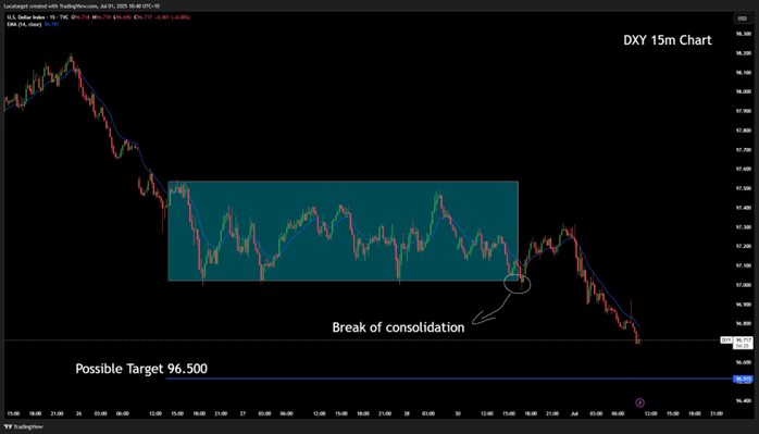 A: The greenback is weakening due to two major factors: growing uncertainty around US trade and fiscal policy, and signs that the US labour market is cooling. These concerns have pushed the DXY down near 97.00 and dragged 2-year Treasury yields to around 3.7%.