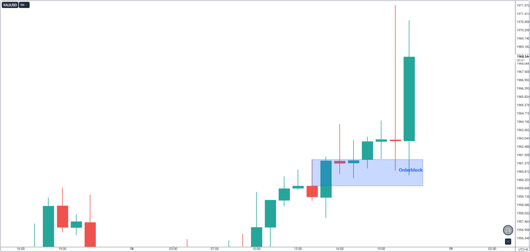 • Order Block (OB): The last opposing candle(s) before a strong move that caused a break of structure.