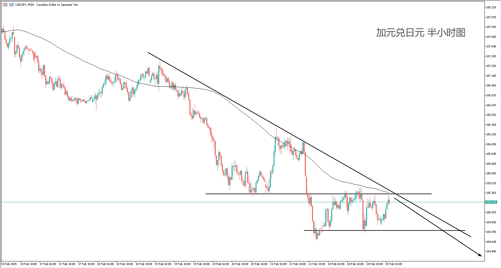 交易策略:(趋势跟随)105.4下方逢高做空或突破104.8顺势做空