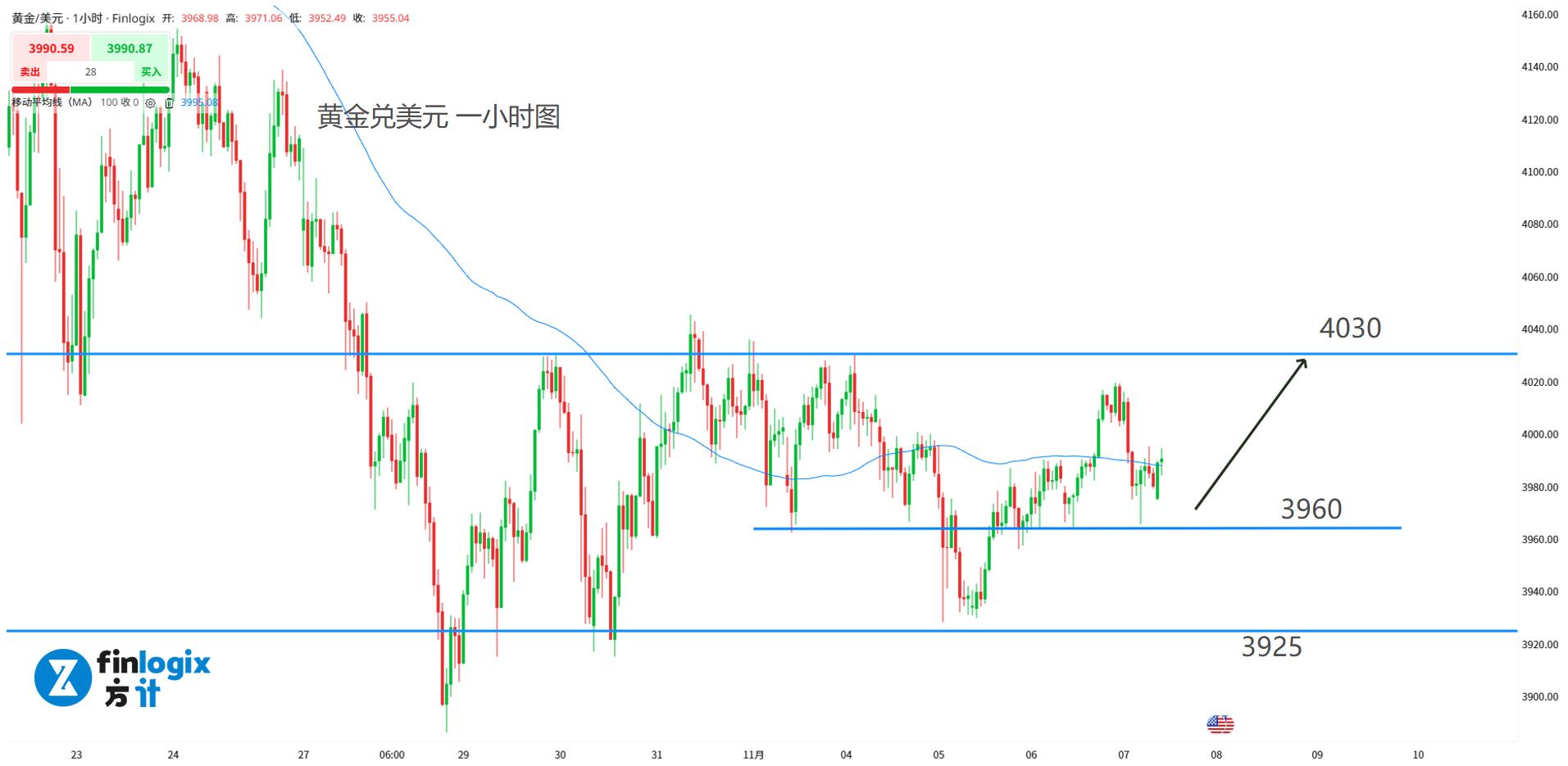 短线交易策略:(均值回归)3960-3970附近低位看涨