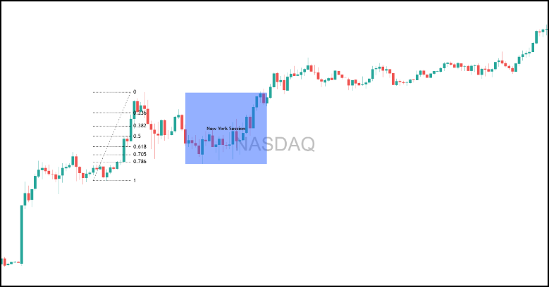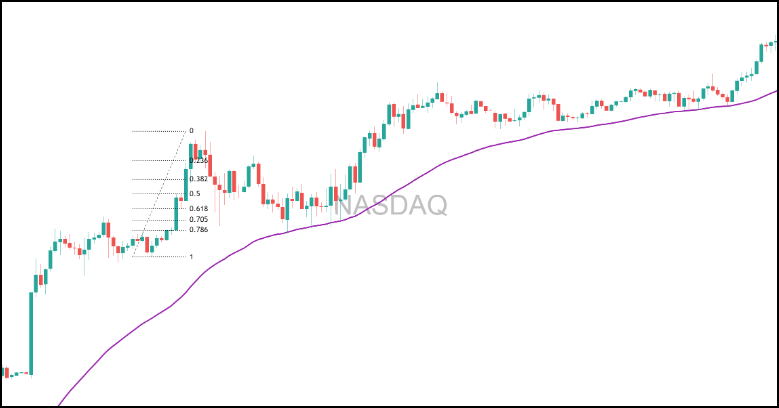 Let’s say price is pulling back to the 0.618 retracement on the NASDAQ.