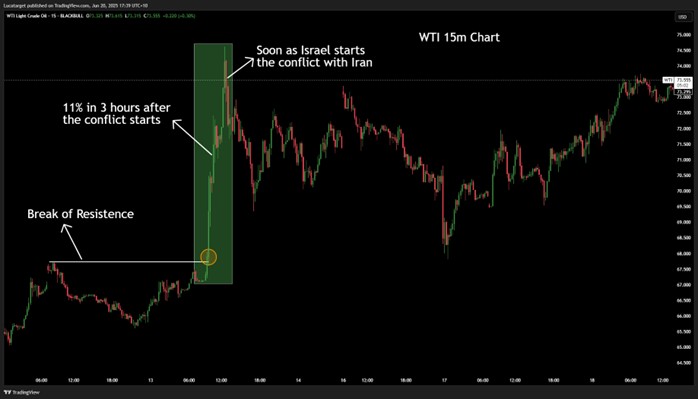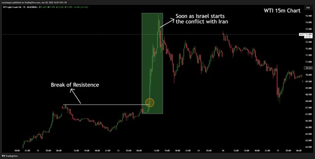 That’s your signal that fear is driving the oil market. Look for clean breakouts above previous resistance levels this often leads to strong follow-through, especially during conflict escalation.
