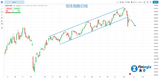 技术面:上行轨道在运行了5个月之后,终于被跌破下缘,且昨天向上测试26000未过,当前做空有还不错的风险报酬比。