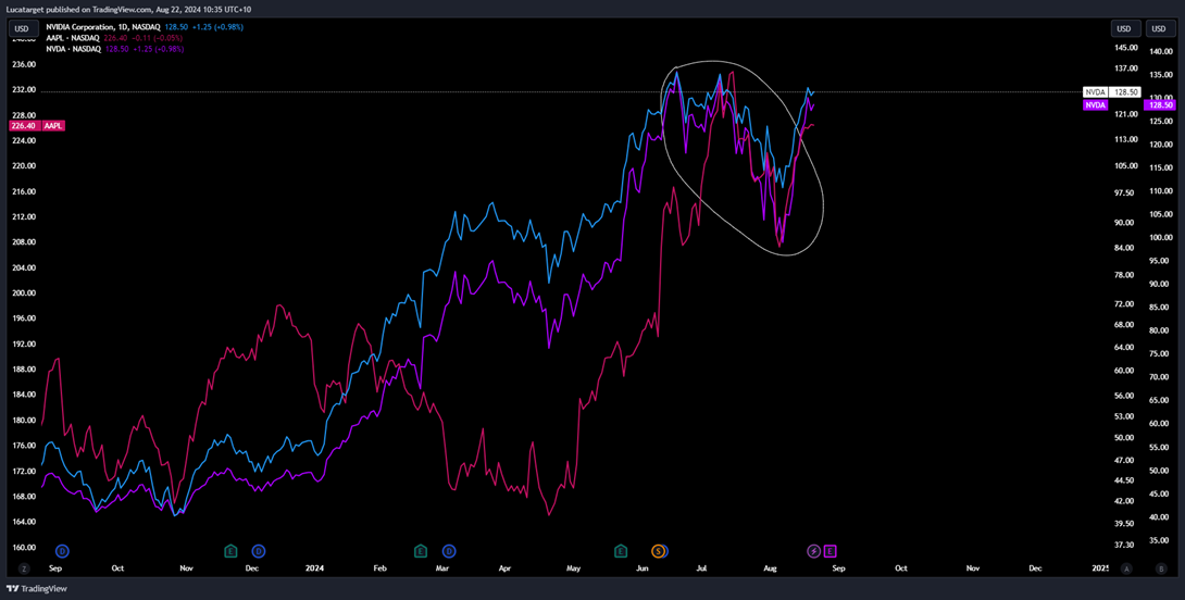 Apple (Pink), NVIDIA (Blue) & Microsoft (Purple)