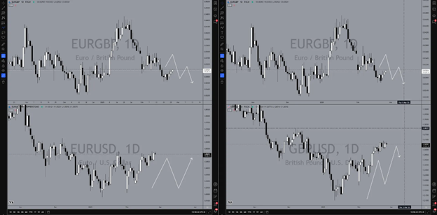 If we plan to trade EUR/USD or GBP/USD, we can use EUR/GBP as a reference pair to compare the relative strength of EUR and GBP.