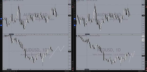 For AUD/USD and NZD/USD, the third currency is AUD/NZD.