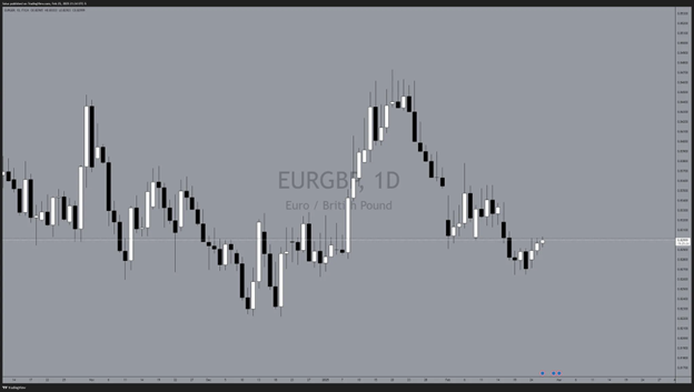 • As a second criterion, determine if the combined currency—EUR/GBP in this case—is trending bullish or bearish.