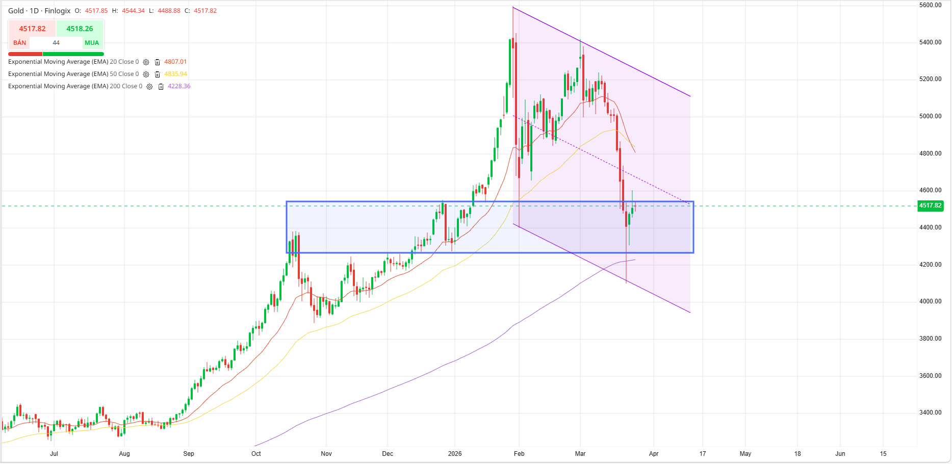 👉 Chờ Mua khi giá hồi về khu vực 4490 – 4530 và mua mạnh khi giá vượt mức 4600.