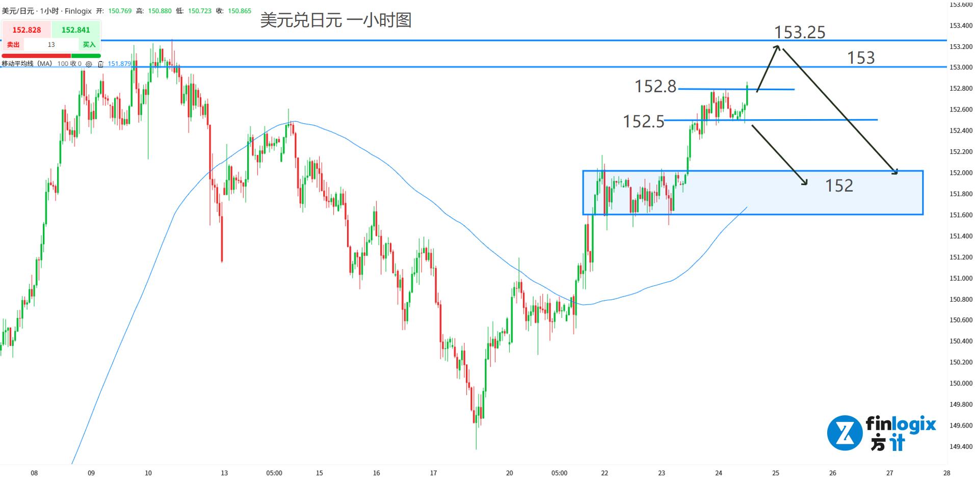 阻力参考:152.8(日内止损);153-153.25;154;155