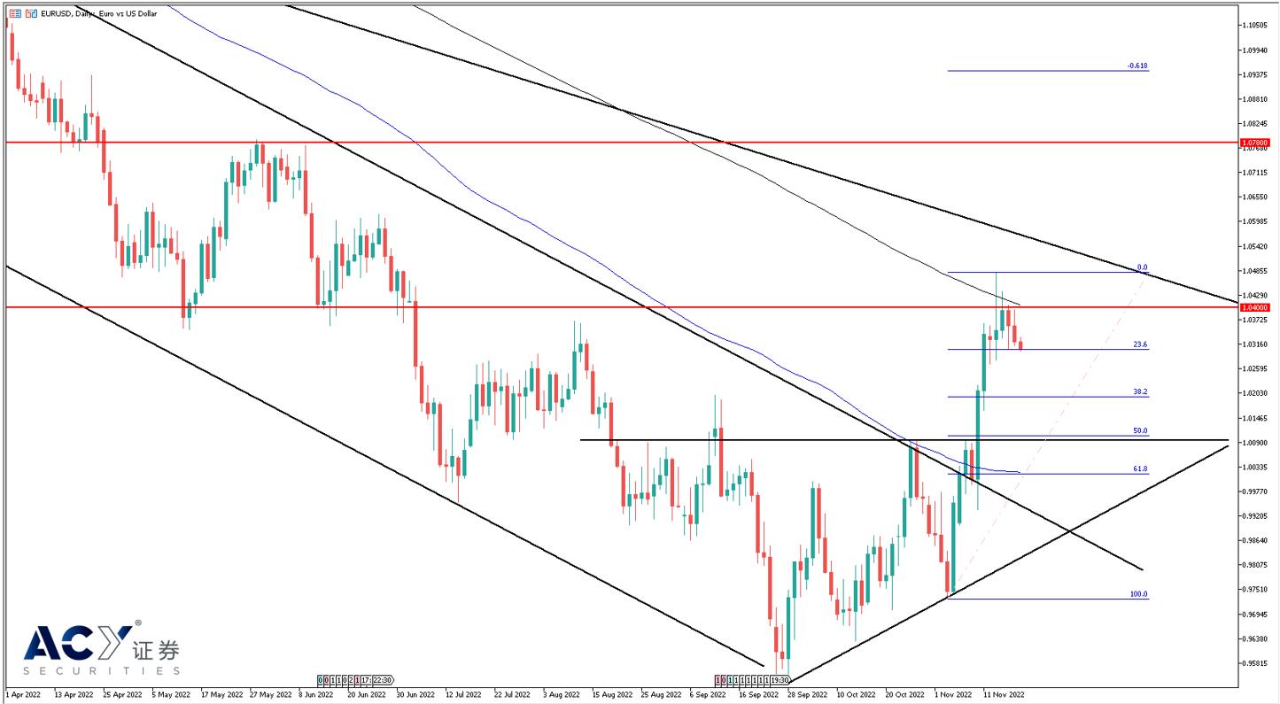 从欧元兑美元日线图来看,受到国内政策与美国通胀数据影响,欧美直接向上突破了下降趋势线与100日均线的共同阻力,并形成了明显的底部反转结构。短线释放了见底看涨的信号。不过欧美在抵达1.04的关键水平关口后开始震荡企稳,该位置还是200日均线与长线下降趋势的共同压力位置,存在较强的阻力效果。短线来看,消息面动能强势,以逢低做多为主,可以关注1的平价大关。长线来看,加息与通胀的方向并不明朗,应该以高抛低吸为主,上方关键阻力位置在1.04和1.078两个中继形态位置附近。