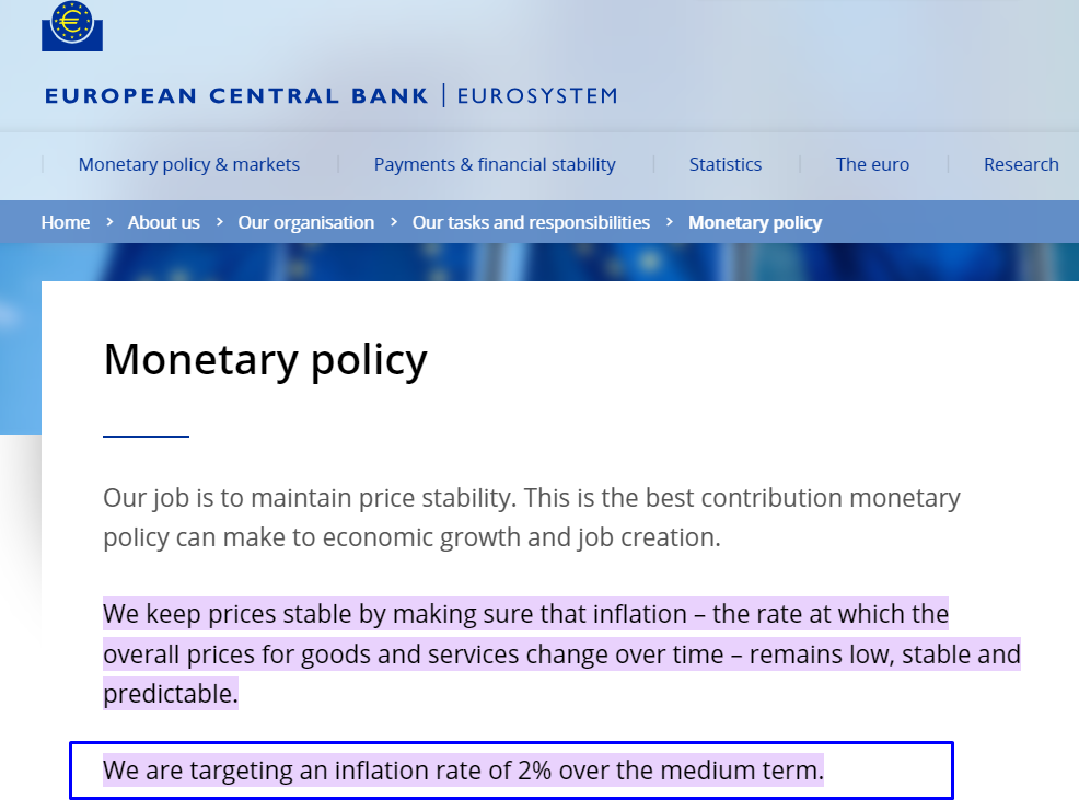 According to the ECB, "We are targeting an inflation rate of 2% over the medium term."