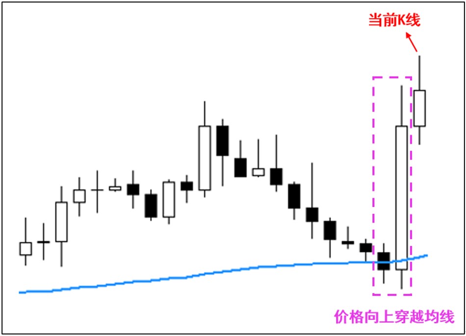 笔者以最常被用来当成是基础的趋势突破策略,也就是价格向上突破均线或向下跌破均线的进场方式进行说明。
