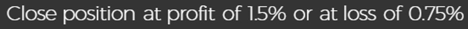 Close position at profit of 1.5% or at loss of 0.75%