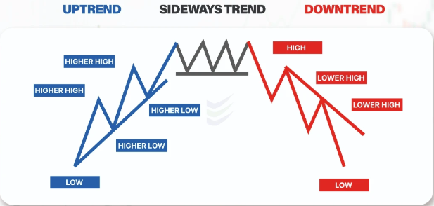 Higher highs and higher lows: This is a visual sign of an uptrend. Buyers are in control, and each dip gets bought quickly.