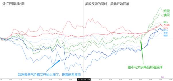 美元:早盘美元保持强劲。但在美股反弹,美债利率下跌的同一时间,美元也结束上涨,开始回落。连带一众非美货币集体上涨,并在美股盘后加速上扬。