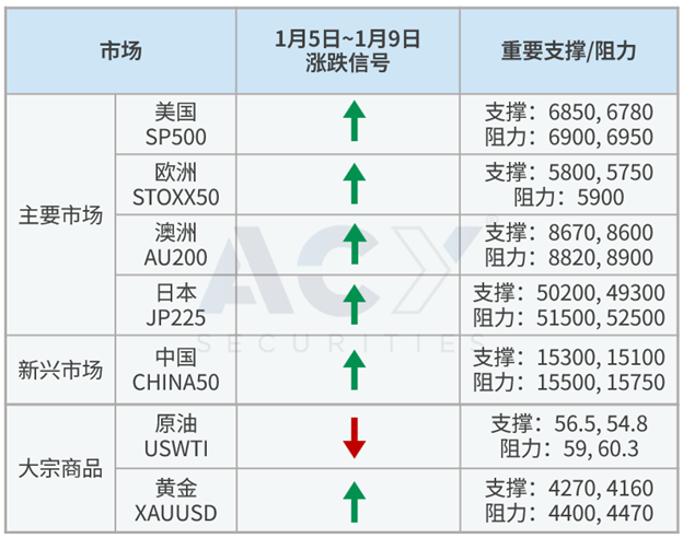 -本周 美国S&P500、欧洲STOXX50、日经225、澳洲200、中国A50逢低偏多