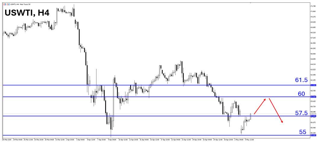 技术面:油价因OPEC+增产消息,周一跳空跌破57.5美元,今天虽出现反弹,但在供大于求、且关税带来的不确定持续让需求不振,预期油价将难以扭转偏空型态,短线反弹至重要阻力,并出现止涨型态时,将有偏空机会。