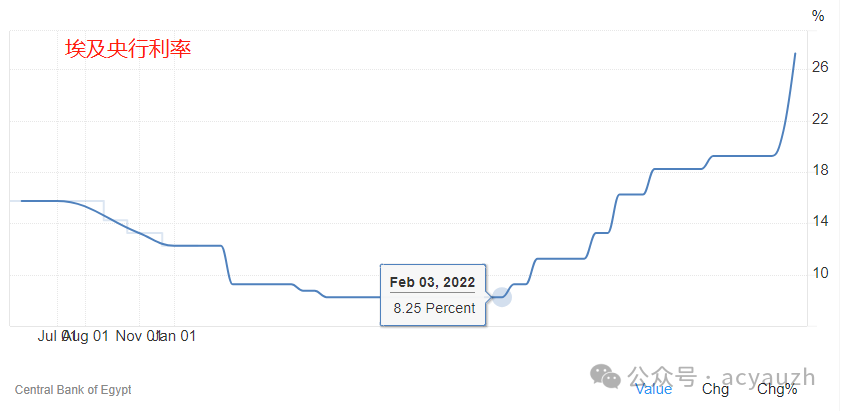 再回头看昨晚,明明埃及央行再次加息6%,但埃及镑却暴跌了,原因在于央行表示不会再用外汇储备稳定埃及镑的汇率了。失去外汇控制、叠加信用降级,埃及有可能成为下一个津巴布韦。