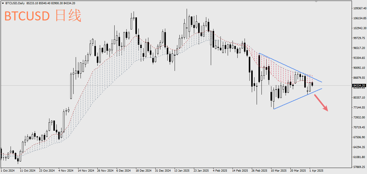 从此部份来看,美国一季度的GDP很有可能倒退。因此4月4日即将公布的美国3月份非农就业数据扮演着非常重要的角色,这将是市场用来检验美国实质经济是否衰退的重要依据。当前就算是被称为数位黄金的比特币在这波由特朗普引发的关税乱流也是被当成风险资产而遭遇重击,因此非农数据的好坏将影响加密货币的走势。