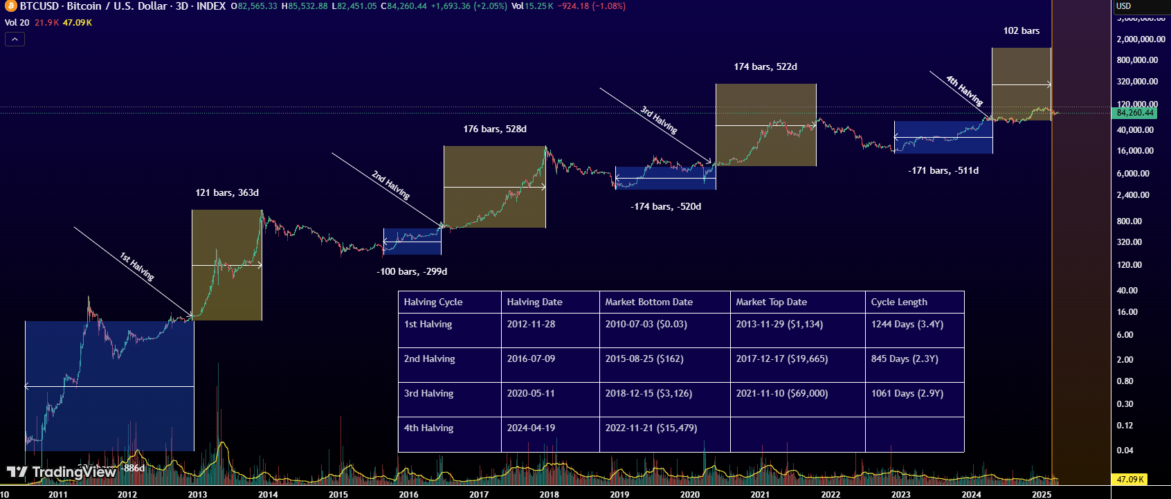 去年4月经历的比特币第四次减半后,市场将进入行情验证阶段。过去经验显示,减半后12-18个月常出现价格峰值,接下来4月到10月比特币是否能踏着历史规律继续上行,将是接下来市场关注的焦点。