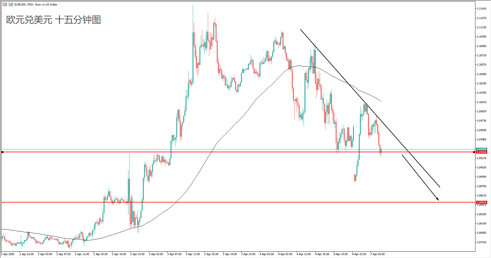 交易策略:(趋势跟随)跌破1.092后跟随做空
