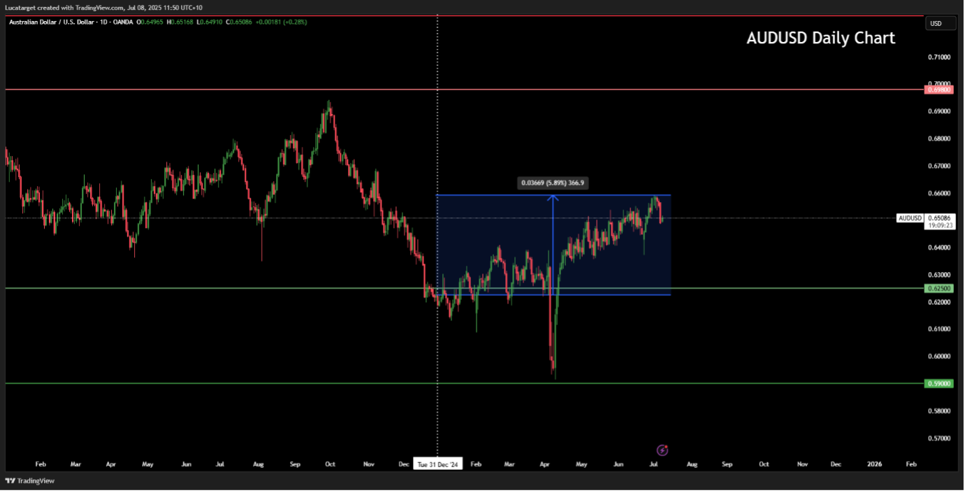 But the AUD has proven resilient. In 2025 alone, the AUD/USD pair has appreciated by over 6%, supported by: