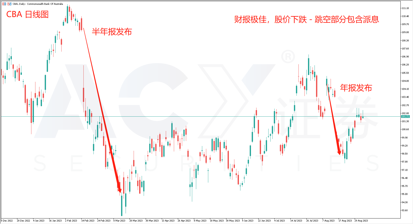 以澳洲市值第二大的银行股CBA为例,上个财年发布的半年报和年报都出奇的好,然而股价却在财报公布后高开低走,这就是明显的“买预期卖事实”的行情。