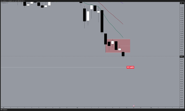 As the US market continue to lose traction amid trade wars and losing appeal due to turbulent geo-political tensions, primarily, with China and its counterparts in Europe, the Dollar keeps losing ground with no signs of stopping with 97.685 on the horizon.