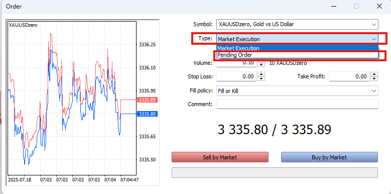 Chọn "Pending Order" (Lệnh chờ).