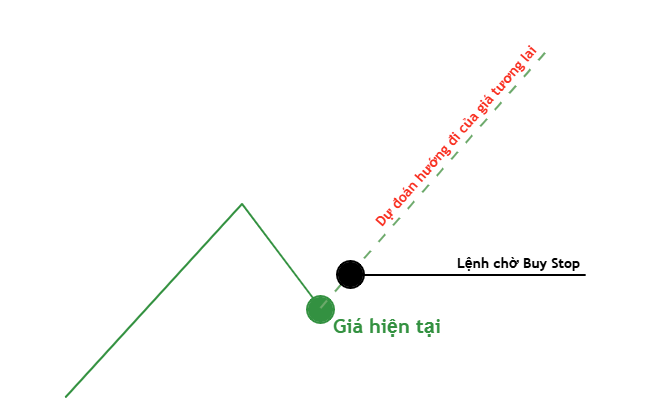 Lệnh Buy Stop: Là lệnh chờ mua được đặt ở một mức giá cao hơn giá thị trường hiện tại. Lệnh này sẽ được kích hoạt và trở thành lệnh thị trường (Market Order) khi giá đạt hoặc vượt qua mức giá Buy Stop bạn đã đặt. Thường được sử dụng để vào lệnh khi giá phá vỡ một ngưỡng kháng cự quan trọng, dự đoán xu hướng tăng tiếp diễn.