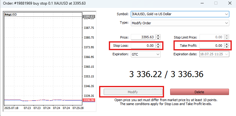 Bạn có thể thay đổi mức giá Price, Stop Loss, Take ProfitExpiration.