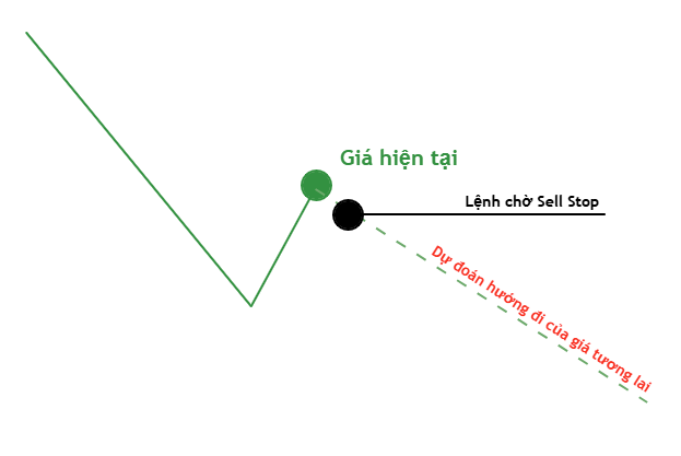 Lệnh Sell Stop: Là lệnh chờ bán được đặt ở một mức giá thấp hơn giá thị trường hiện tại. Lệnh này sẽ được kích hoạt và trở thành lệnh thị trường khi giá đạt hoặc giảm xuống dưới mức giá Sell Stop bạn đã đặt. Thường được sử dụng để vào lệnh khi giá phá vỡ một ngưỡng hỗ trợ quan trọng, dự đoán xu hướng giảm tiếp diễn hoặc để đặt lệnh dừng lỗ (Stop Loss) cho một vị thế mua.